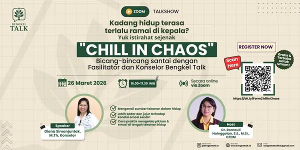 “Sebelumnya saya berterimakasih untuk waktu konseling yang diberikan Bengkel Talk, dengan adanya sesi ini saya merasa jauh iebin baik dan merasa masin ada seseorang yang mau mendengarkan saya. Hari itu saya datang dgn perasaan yang campur aduk, bingung tentang banyak hal. Hingga akhirnya saya dpt bercerita banyaaakkk hall dengan bu Arum. Saya sngt bersyukur sekali krna dengan bertemu bu Arum memberikan saya bnyk pov baru. Bukan hnya dri segi apa yg saya mau tpi juga tentang apa yang tuhan mau. Dari sesi ini membuat saya lebih lega dan yakin, bahwa perasaan saya yg selalu merasa sendiri hanyalah bayang" dri trauma dimasa lalu dan hal itu hrs diselesaikan terlebih dahulu. Bu arum pun memberikan bnyk solusi dri berbagai cerita saya, mulai dari sisi emotional dan religous. Sekali lagi saya ingin mengucapkan terimakasih sebanyak"nya pda bengkel talk dan Bu Arum.”